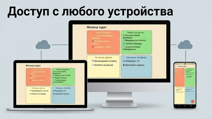 Именно так должен работать современный инструмент управления задачами. Без привязки к одному устройству. Без потери данных. Без лишних сложностей.